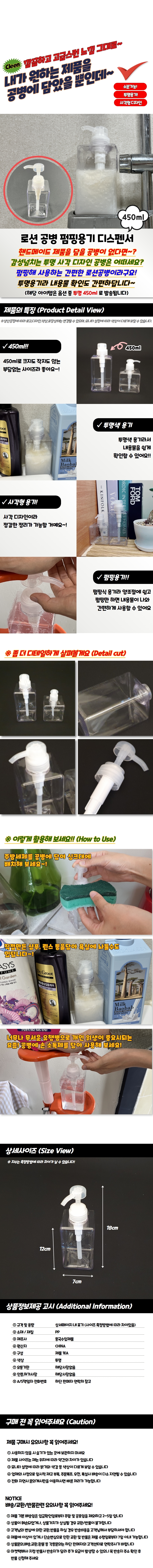 로션 펌핑 용기 투명 공병 450ml 화장품 디스펜서