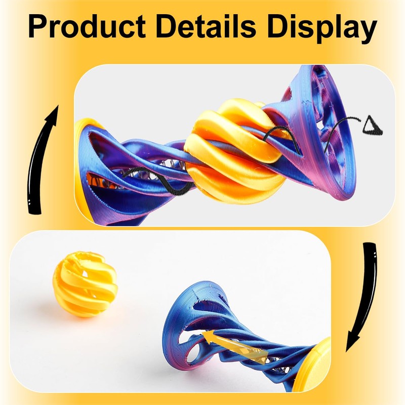 - Mind-Bending 3D Design: This spiral ball fidget toy is 3D printed to create an illusion that will leave you mesmerized. Watch as the ball seems to pass through the spiral with an impossible motion – a fascinating and visually striking experience.