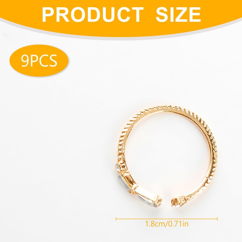 Lotsdonxia 9-Piece Rhinestone Ring Set – Adjustable & Stackable Heart Star Mo...