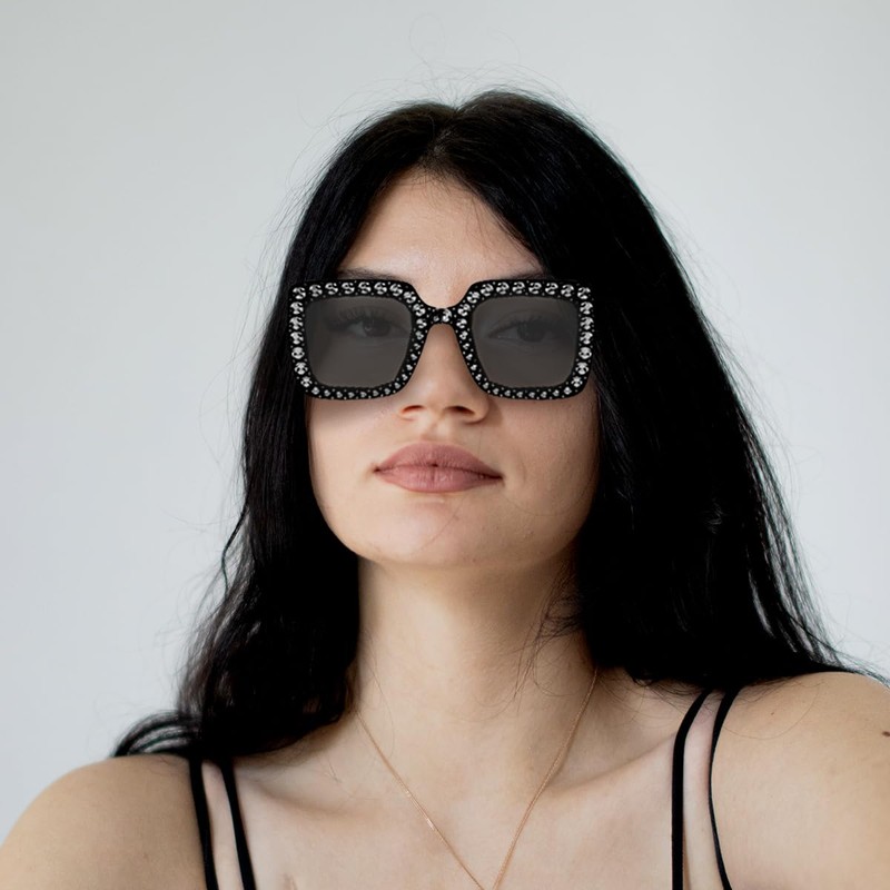 Lotsdonxia Rhinestone Square Sunglasses Large Frame Crystal Sunglasses Dazzling Costume Accessories for Parties, Festivals, and Glamorous Outfits (Black)