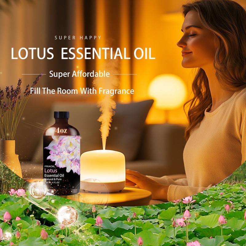 - Premium Lotus Essential Oil: Enjoy the refreshing and soothing aroma of Lotus Essential Oil, FRAOIL Lotus Essential Oil is an upgraded and enhanced formula that has been sorted and bottled through a rigorous and standardized process to ensure the highest quality ingredients. Whether you use it for home aromatherapy or perfumery, this Lotus essential oil will bring you a relaxing atmosphere.