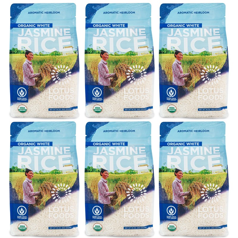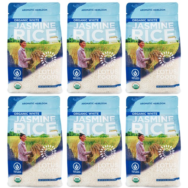 Lotus Foods Organic White Jasmine Rice - Jasmine Rice, Gluten Free White Rice, Organic Rice, Long Grain Asian Sticky Rice, USDA Organic, Vegan, Gluten Free - 30 Oz (Pack of 6)