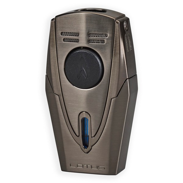 Lotus Fury Cigar Lighter with Double Pinpoint Torch Flames, Single Action Ignition, All Metal Housing, Integrated Cigar Punch, Tinted Fuel Level Window (Gunmetal)