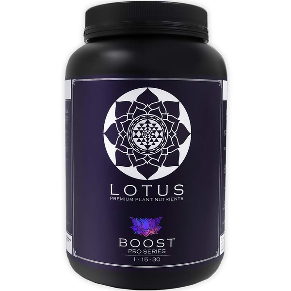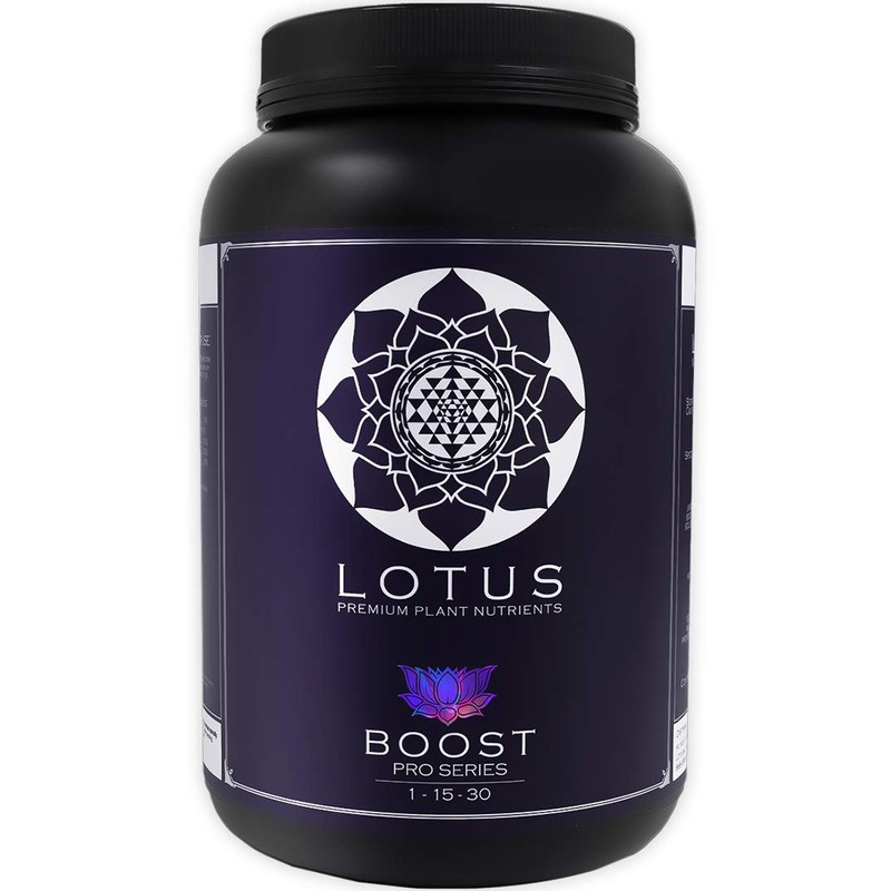 Lotus Pro Series Boost is the turbo-charged secret weapon that leads to an unsurpassed size and density of flowers, while maximizing oil production for increased potency and taste. The only bloom booster on the market to contain a water soluble amino acid portion of nitrogen (1%). Full spectrum of amino acids provides fast and vibrant growth during critical stages of flower development. Perfect ratio of potash to phosphorus, idea for hydroponic, soilless or coco coil mediums. Total Nitrogen(N): 1.0%