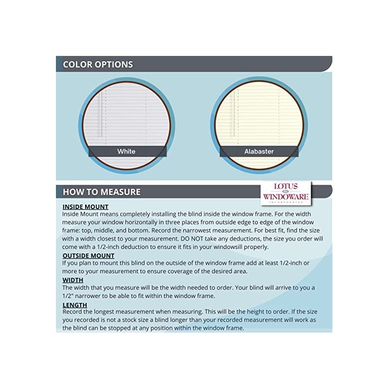 - MEASURING INSTRUCTIONS: To determine the width measure inside of the window opening from left to right at the top, middle, and bottom. Record the narrowest measurement. For best fit, find the size with a width closest to your measurement. The height of the blind will be the longest measurement from top to bottom. A blind with a height longer than your recorded measurement will work as the blind can be stopped at any position within the window frame.
