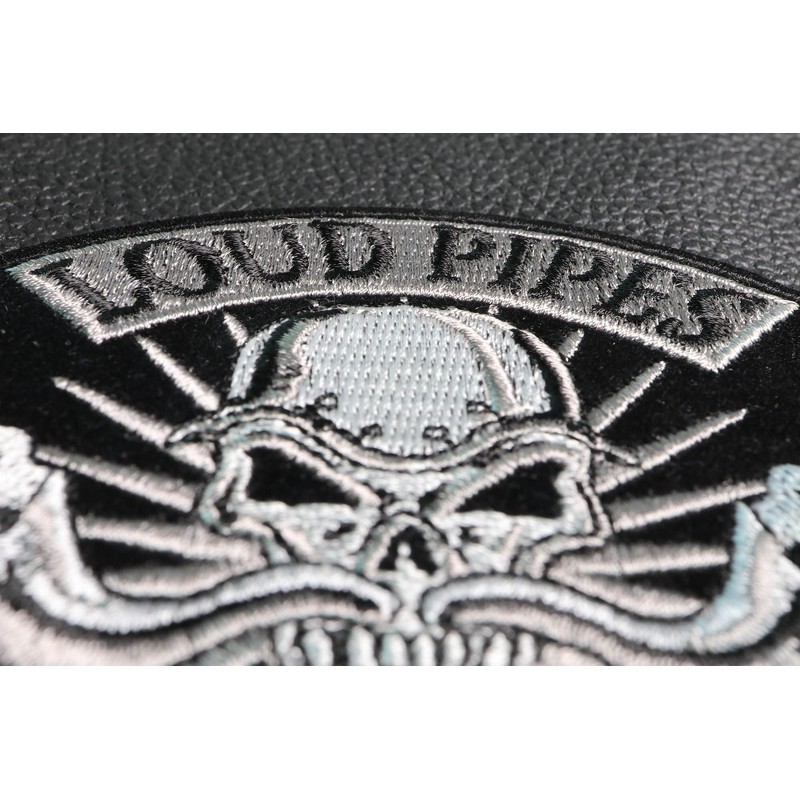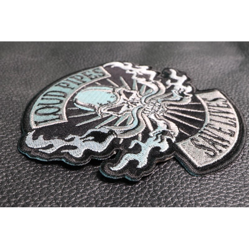 Loud Pipes Save Lives Skull and Pipes Patch, Biker Skull Patches