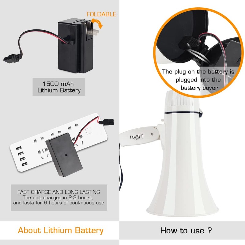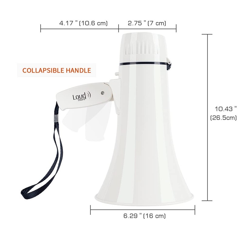 Loudmore Portable Megaphone Bullhorn 35 Watt Power Megaphone Speaker with Siren/Alarm Modes, 240S Recording, USB Flash Drive, Detachable Handheld Microphone, Volume Control and Strap (White)