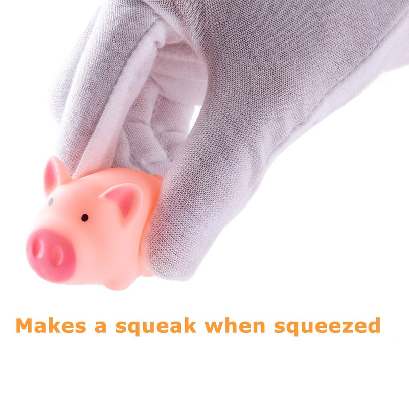 - Squeaky Pigs - These cute pigs will squeak when you squeeze them, so they are nice toys to play pranks. The mini rubber piggies also float on water pool and beach, bringing kids a lot of joy while swimming or taking bath. Kids Can't Stop Playing With Them!
