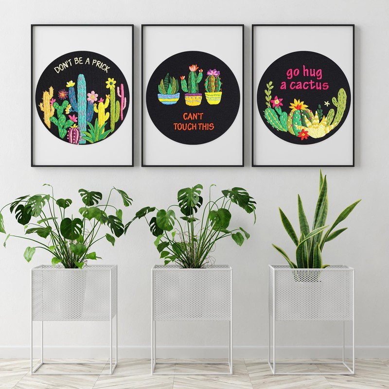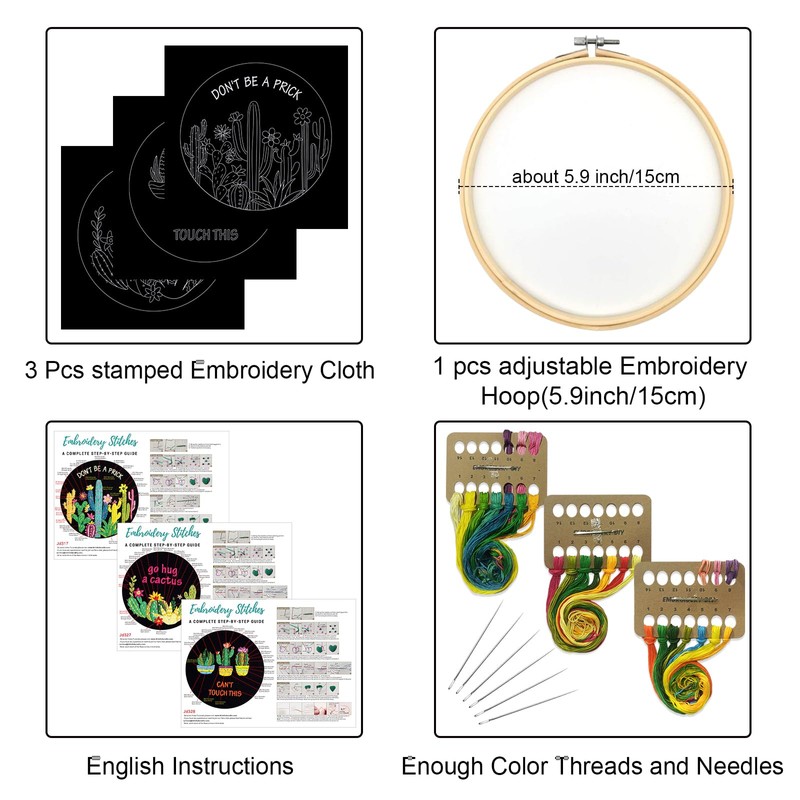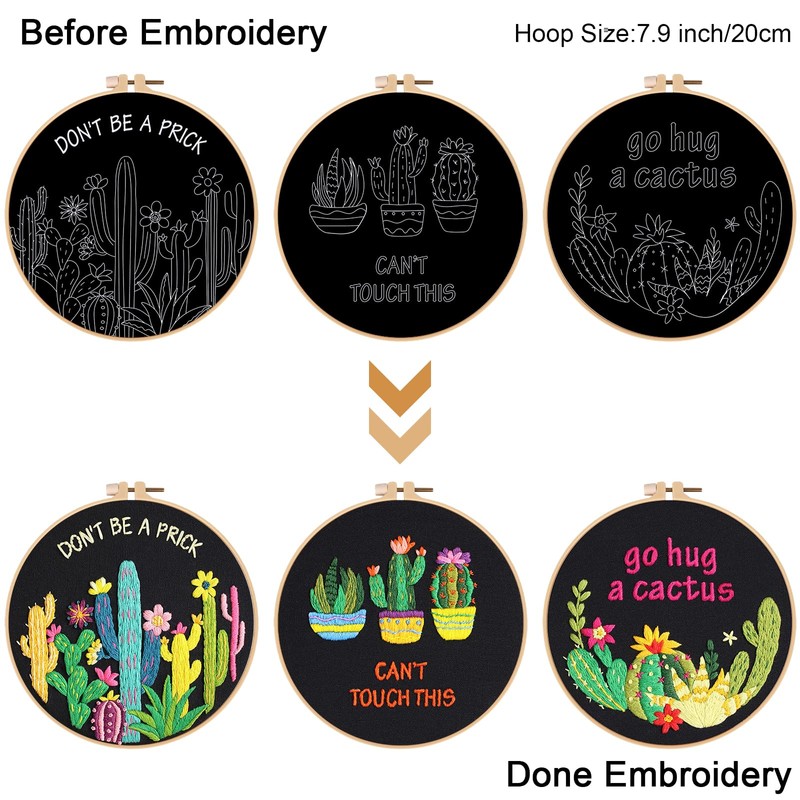 - Art cactus pattern:There are art night magic cactus plant pattern on the embroidery cloth,which will provide great help for Embroidery beginners.Notice:The pattern is made of special ink, meet the water will disappear, do not touch water before you finish embroidery
