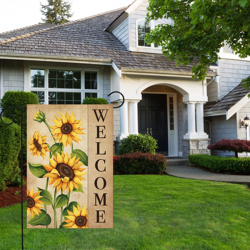 Louise Maelys Welcome Floral Spring Summer Garden Flag 12x18 Double Sided, Burlap Small Vertical Spring Summer Fall Sunflower Flower Garden Yard Flags for Seasonal Outside Outdoor House Decoration (ONLY FLAG)
