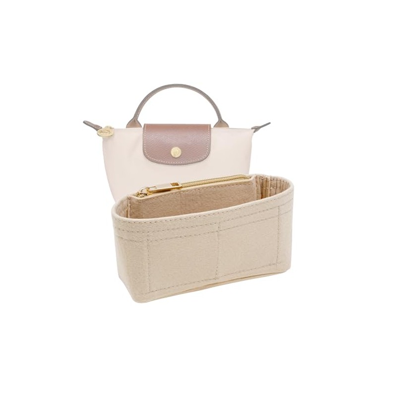 LOUKAYCCI Felt Purse Organizer Insert for Longchamp Mini Bag White Zipper Insert (Zipper Beige, Mini)
