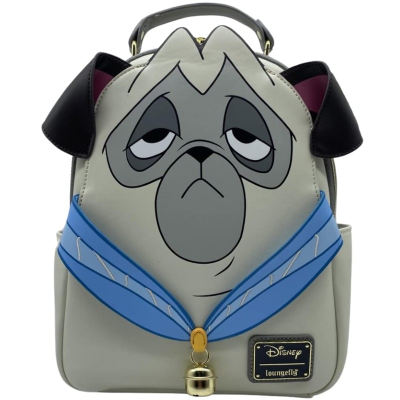 - Features: Shiny gold hardware, 2 side pockets, inside zip pocket, compass zipper charm, applique ears and collar, gold colored bell, and embroidered and printed details.