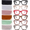 LOUOL 6 Pack Readers for Women Oprah Style Square Reading Glasses with Spring Hinge Blue Light Blocking for Men Ladies +1.75