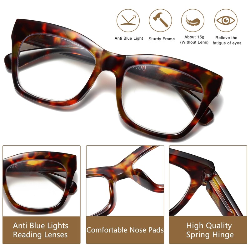 - 【ANTI BLUE LIGHT READERS】Blue Light Blocking Glasses can effectively block harmful blue light coming from phones, computer monitors, gaming, and other devices. Reduce eyestrain, enjoy your digital timeand sleep better.