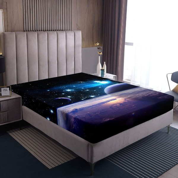 Loussiesd Children's Galaxy Stars Fitted Sheet 140 x 200 cm 3D Print Galaxy Bed Sheet Space Motif Fitted Sheet Microfibre Fitted Sheet