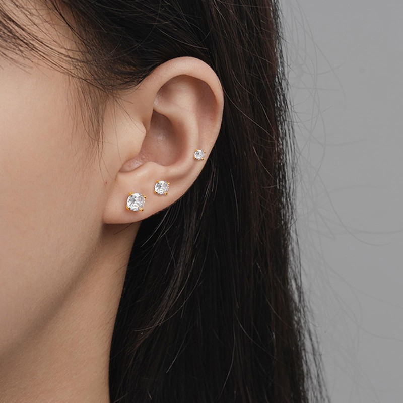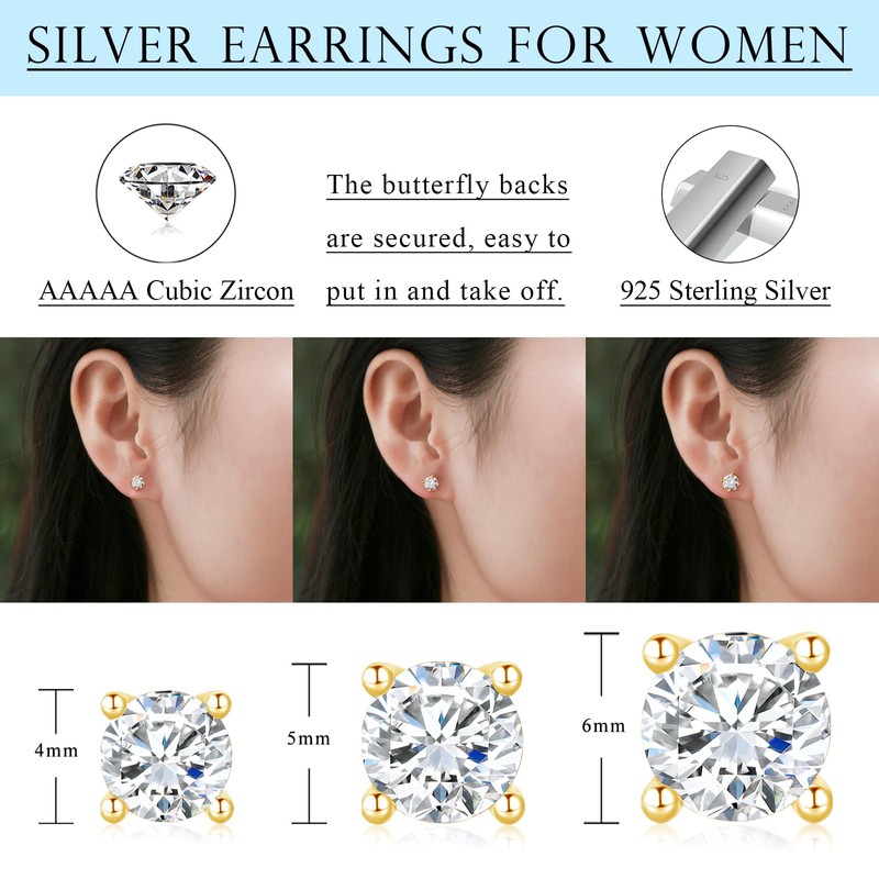 Stud earrings size: the pack contains 3 pairs of cubic zirconia silver women's stud earrings in different sizes: 4 mm / 5 mm / 6 mm.