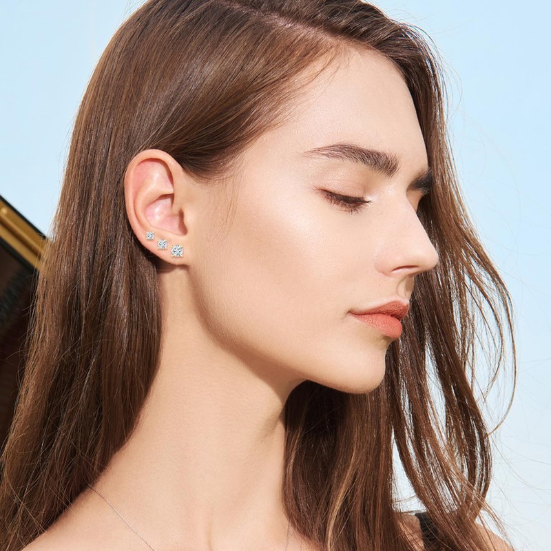 - Small stud earrings material: silver women's stud earrings set is made of the finest 925 sterling silver with AAAAA cubic zirconia. High polish keeps silver women's stud earrings shiny forever. 925 sterling silver stud earrings set is hypoallergenic and nickel-free, suitable for almost all sensitive ears. The locking plugs hold perfectly. So you don't have to worry about losing the 925 silver stud earrings.