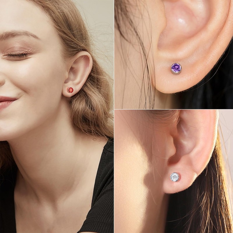 【3 Colors of Stud Earrings】 -- You will get different colors of 6mm Silver Zircon Studs Earrings in one collection. (White + Alexandrite + Ruby)