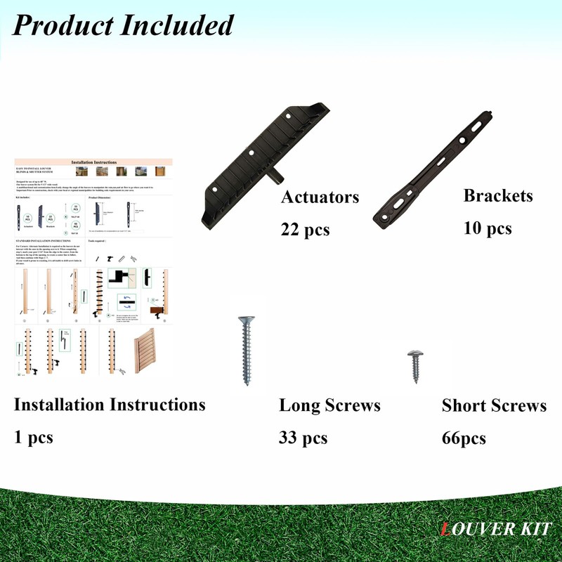 - Kit contains: 22pcs brackets, 10pcs actuators, 33pcs M4.5x40 screws, 66pcs M4x18 screws Louver hardware kit is made with professional Polyamide (Nylon), stabilized, durability, our louver kit showcases exceptional strength and elegance