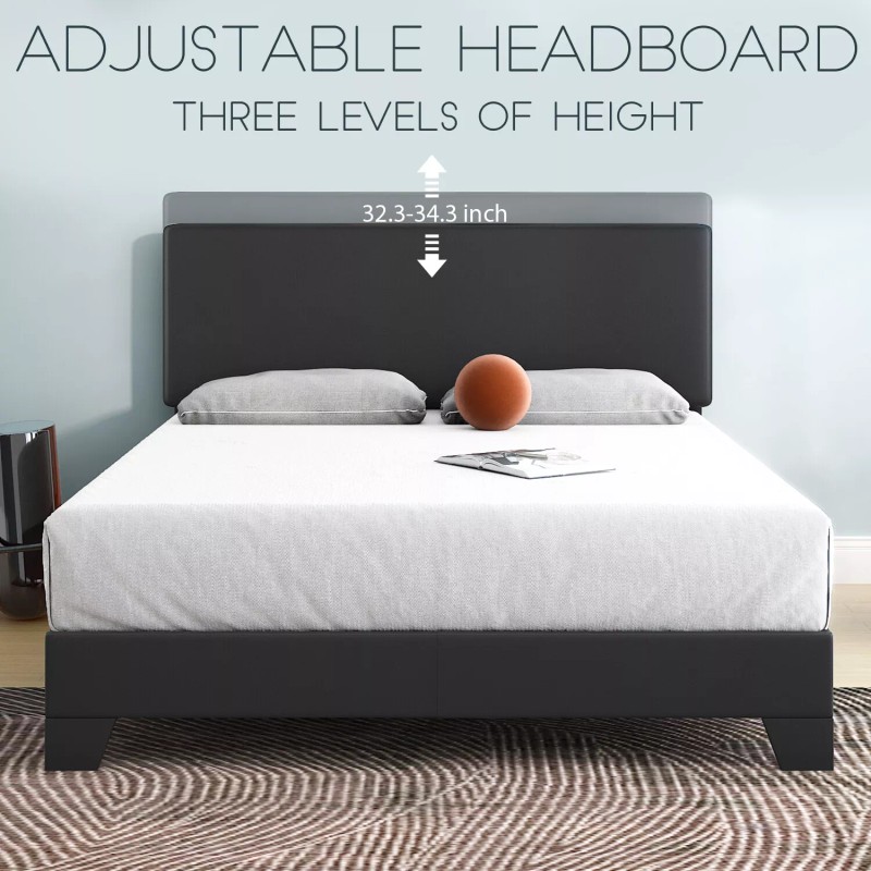 Lov4ever Full Queen King Size Upholstered Platform Bed Frame with Adjustable Headboard - Black & King