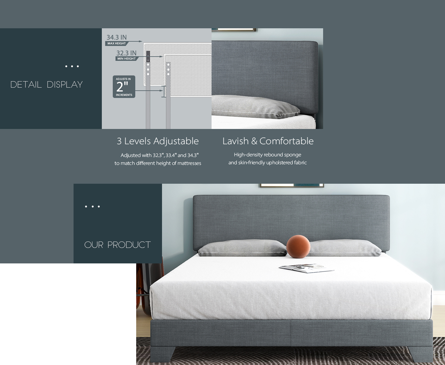 Lov4ever Full Queen King Size Upholstered Platform Bed Frame with Adjustable ...