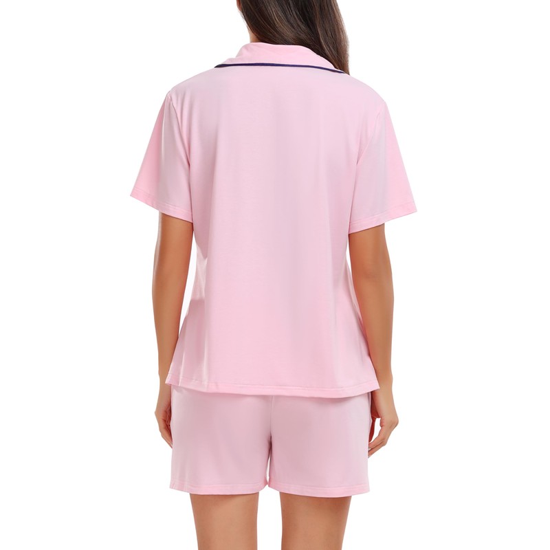 Lovasy Cotton Pyjamas for Women - Button Down Short Sleeve PJs Set With Pockets, Classic Soft Pajamas, Light Pink, S