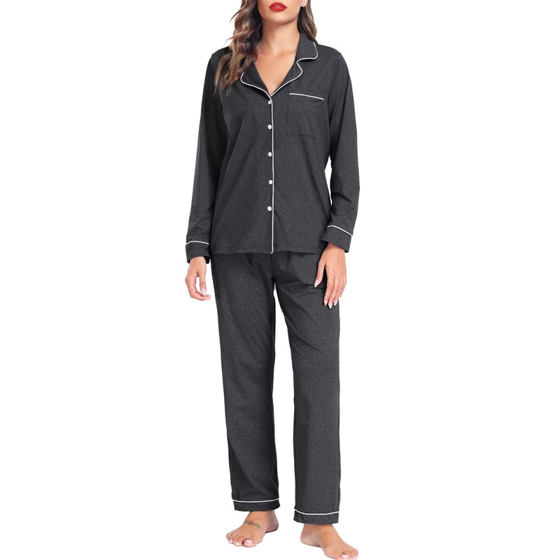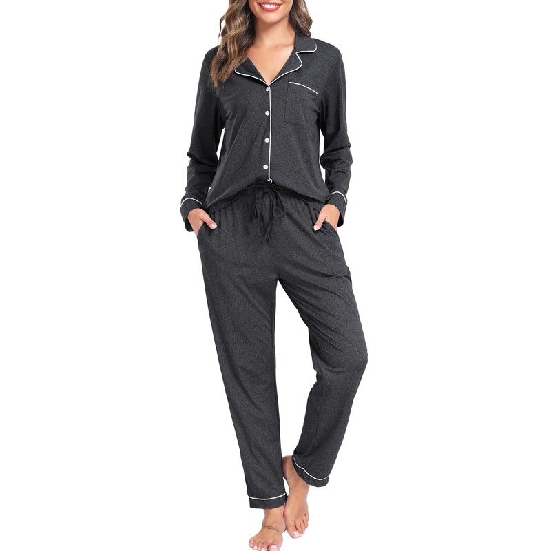 Lovasy Pyjamas for Women Classic Button Down Pjs for Women Sets Long Sleeve Ladies Pyjamas Soft Womens Pyjamas Sets 2 Piece Pajamas with Pockets,Dark Grey,XL