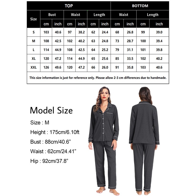 - 【Two Piece Set】:Two-Piece classic pajamas featuring long sleeve top and pants for relaxed fit.This pj set with superior stitching and perfectly-lined hems,classic sleepwear/loungewear style. Breathable pjs sets for women.