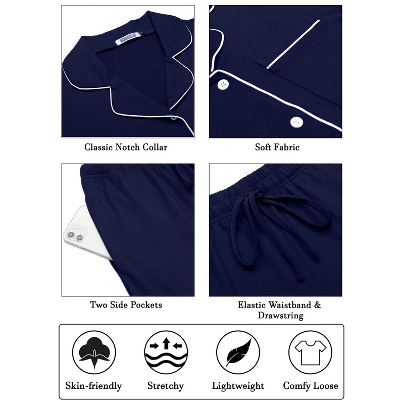 • Classic design: Lovasy pyjamas women's long winter button down pyjamas for women have ruffle lapel collar, button design, white seams exquisite details, classic fashion, elegant and generous, elastic waist comfortable ensures enough freedom of movement, two side pockets offer space for mobile phone, keys and handkerchief.