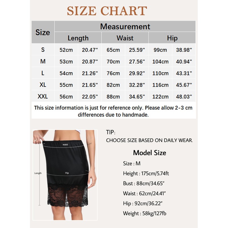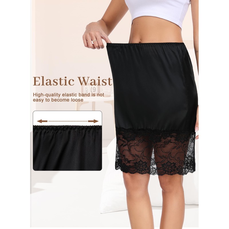 - Elegant Lace Decorative Design:The hem of this skirt petticoat has delicate and elegant lace trim, which is an elegant embellishment under a skirt or any other garment that requires a semi-sling. With exquisite stitching and good edges, it is not easy to snag when wearing. You can easily pair this satin slip with your favorite skirts and dresses.