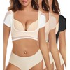 LOVCUIIO Womens 3 Pack Low Cut Crop Tops Short Sleeve See Through Sheer Mesh Crop Undershirts, Low-cut Neck Stretch Fitted Tops, Sweatproof with Sweat Pads, Size Large