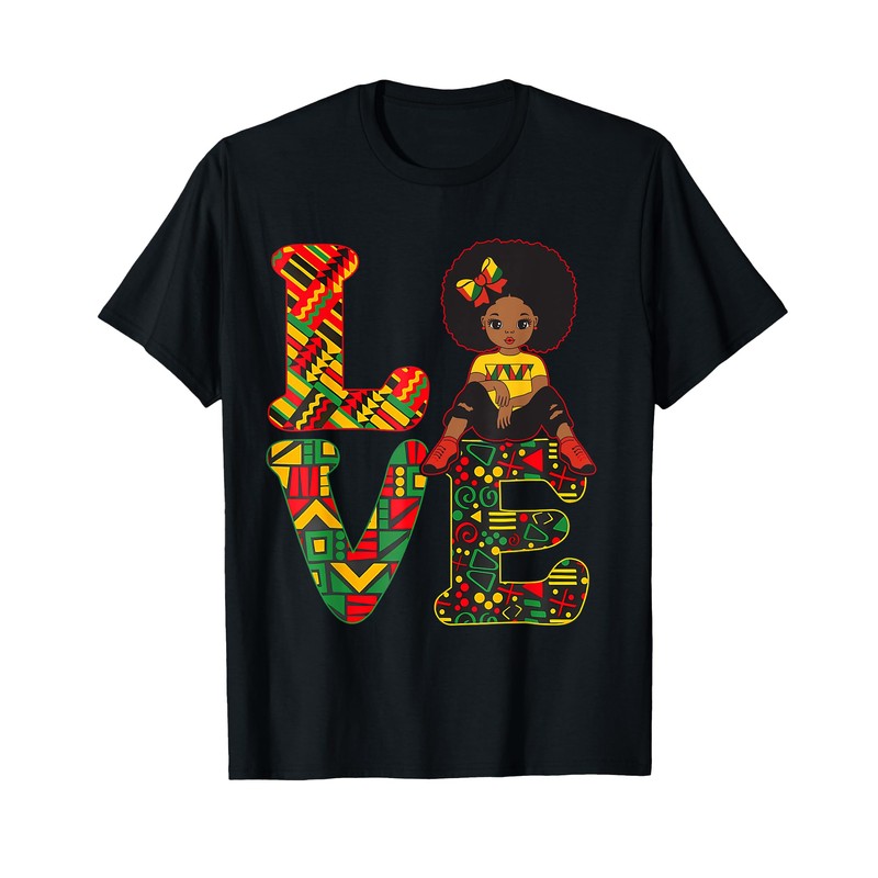 - This Black History Love Afro Girl T-Shirt is a perfect gift for african american men, women, boys, girls, kids. Perfect black pride melanin bhm pan african tee apparel clothes pj to wear in february during Black History Month or Juneteenth