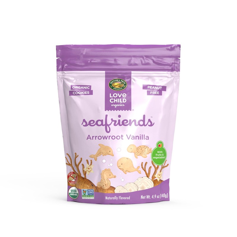 Love Child Organics Sea Friends Arrowroot Vanilla Cookies, 4.9 oz (Pack of 1), Non-GMO, by Nature's Path