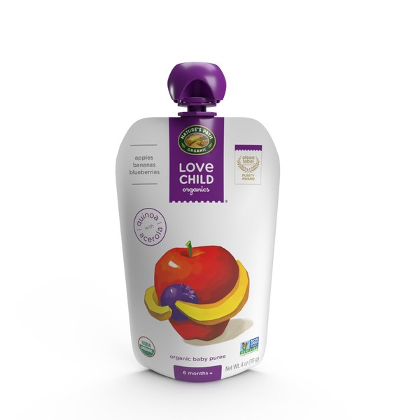 - Contains: 1 Pouch of Love Child Organics Apples, Bananas + Blueberries Puree, 4 ounces