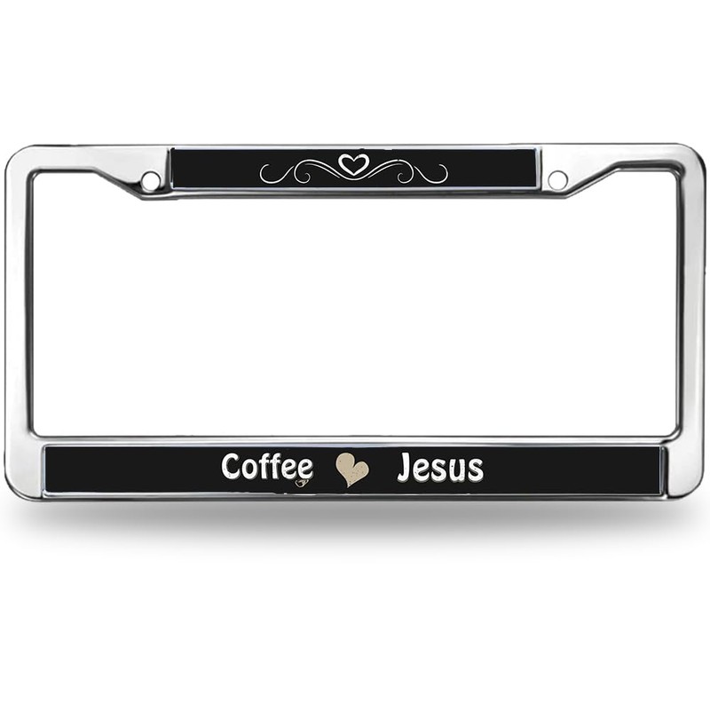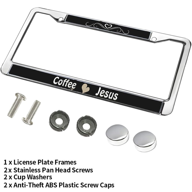 Love Coffee and Jesus License Plate Frame Metal Coffee Power Chrome License Plate Frame Christ is Risen Rattle-Proof License Plate Frame with Screws Caps