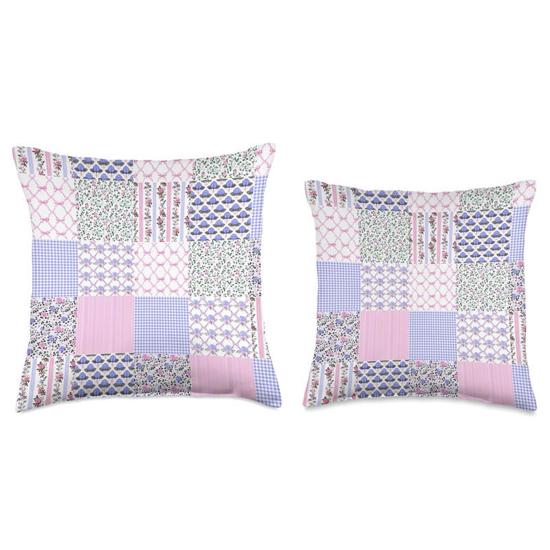 - Step into spring with this coquette-inspired pink and blue floral patchwork inspired design featuring delicate roses, gingham checks, lace-style ribbons, and soft pastel quilt blocks. Chic for girly, romantic, or cottagecore lovers.