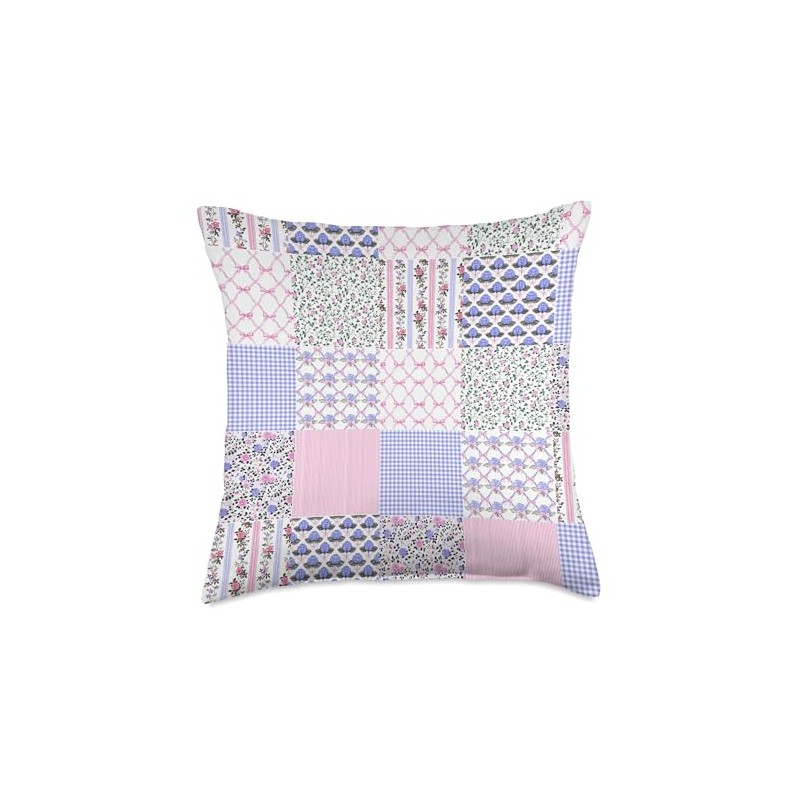 - Step into spring with this coquette-inspired pink and blue floral patchwork inspired design featuring delicate roses, gingham checks, lace-style ribbons, and soft pastel quilt blocks. Chic for girly, romantic, or cottagecore lovers.