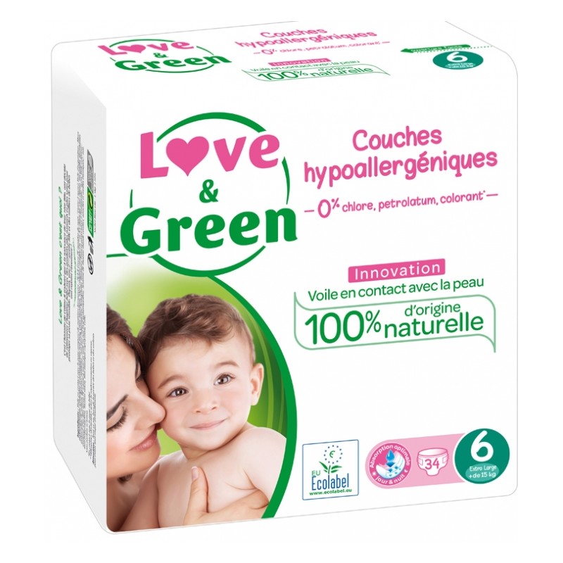 Love & Green Hypoallergenic Nappies 34 Nappies Size 6 (+15kg)