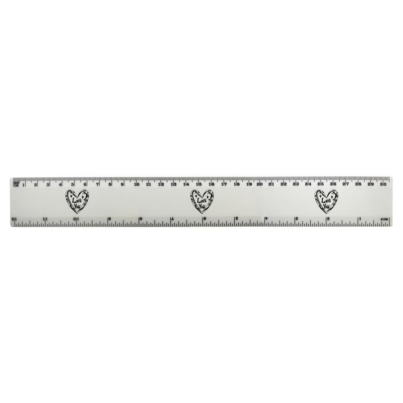 'Love Heart' 30cm (12 Inch) White Plastic Ruler (RL00091014)