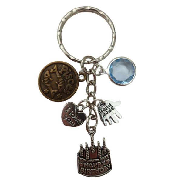 Love Heart Birthstone Keyring Happy Birthday Charm March Aquamarine Pisces
