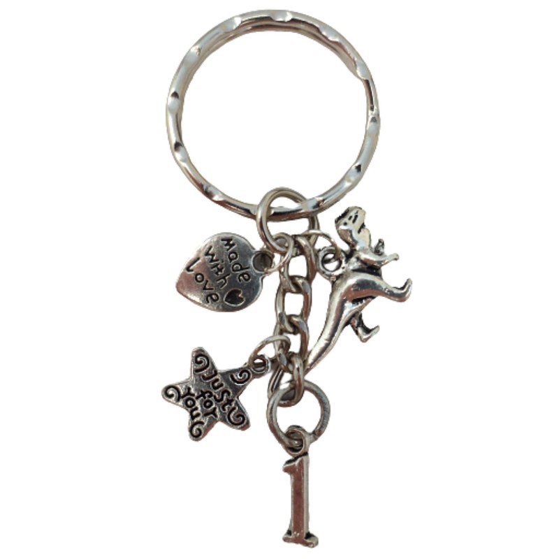 Love Heart Keyring 1st Anniversary Birthday Charm Tyrannosaurus Rex Dinosaur Pendant