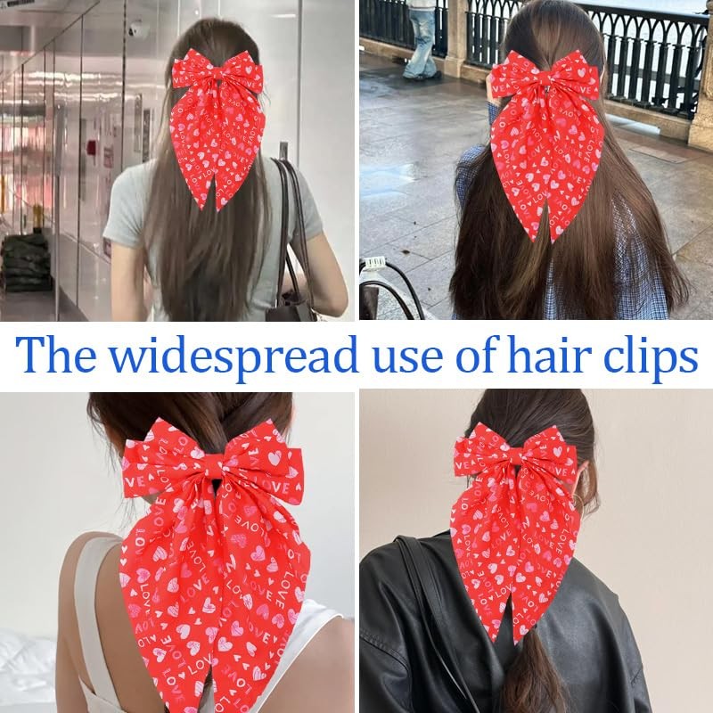- Non Slip Red Heart Pattern Hair Bows Decor: The large long tails hair clip feels solid and secure in hair, the holds your hair in place without sliding out, even when you are on the go, the oversize satin hair barrettes is also attached well, so you don’t worry about it falling apart after a few uses