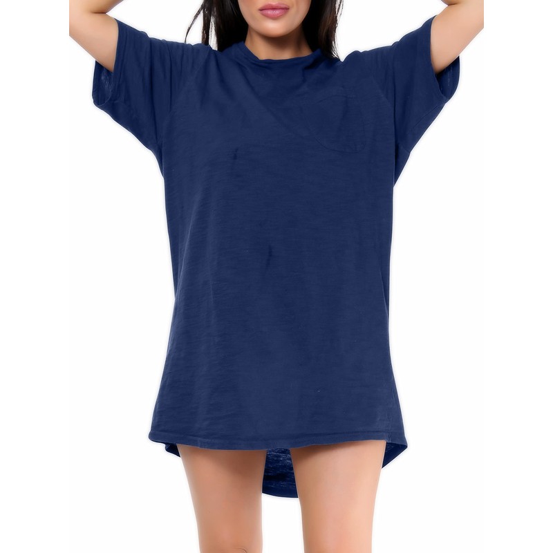 Love My Fashions® Women’s Plain Cotton Night Wear Long T-shirt soft and comfy Nightdress for ladies With Front Pocket Crew Neck Short Sleeves Nightie Sleepwear Top plus Sizes UK=S-3XL Denim Blue