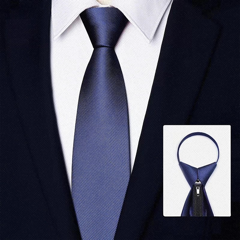 - The zipper closure allows you to complete a beautiful dimple in just 5 seconds without the hassle of tying on a busy morning. Stretch the string over your neck and pull the knot up. Neckties are an indispensable item for businessmen