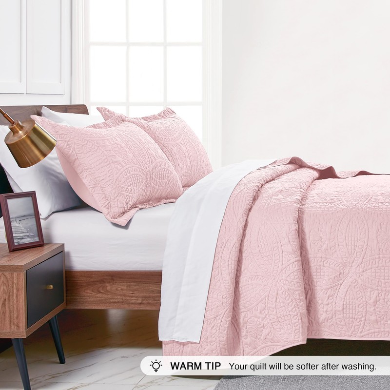 Love's cabin California King Size Quilt Bedding Set Pink Bedspreads - Cal King Summer Lightweight Bedspread Comforter - Coin Pattern Coverlet for All Season - 3 Pieces (1 Quilt, 2 Pillow Shams)