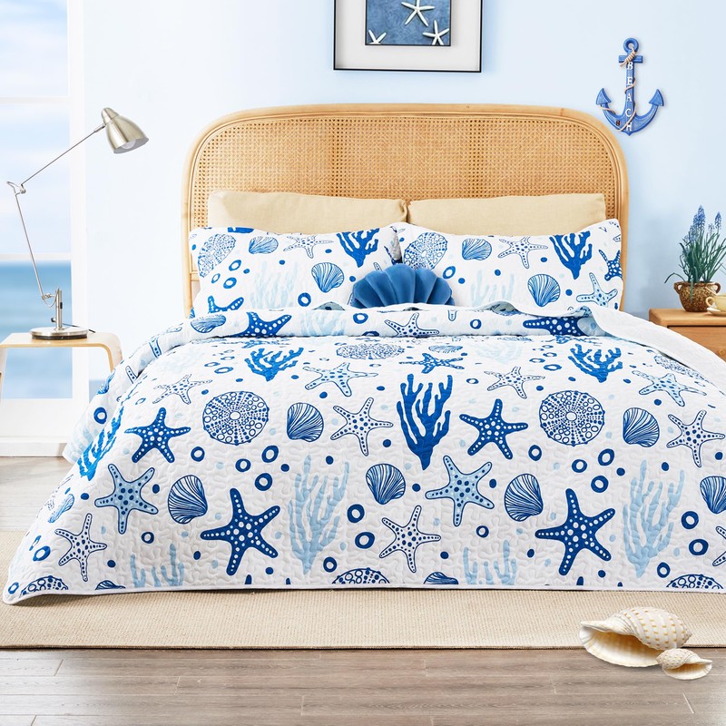 - Outstanding Feature: Our lightweight quilt set is printed with a delicate coastal ocean pattern which is a beautiful choice for homeowners whose house has beach-themed decoration. Tight stitching or seams on the edging will hold up through washing and won't unravel for longer years to use - Lightweight, durable bedspread sets are perfect for family with pets or kids.