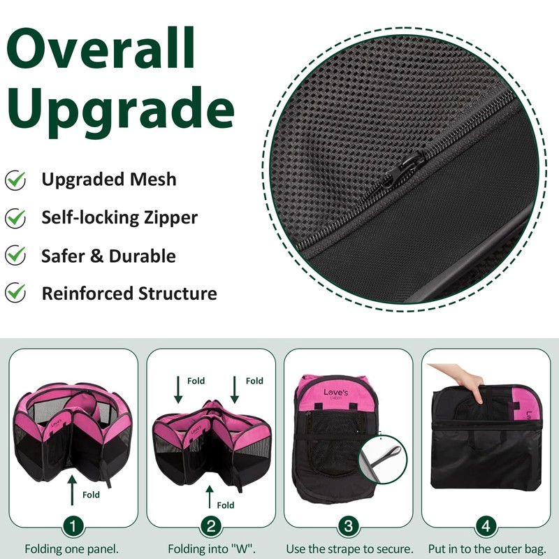 Love's cabin Pet Puppy Dog Playpen, Large Dog Tent Crates Cage Indoor/Outdoor, Portable Playpen for Cat, Foldable Pop Up Dog Kennel Playpen with Carring Case, Removable Zipper Top, Pink