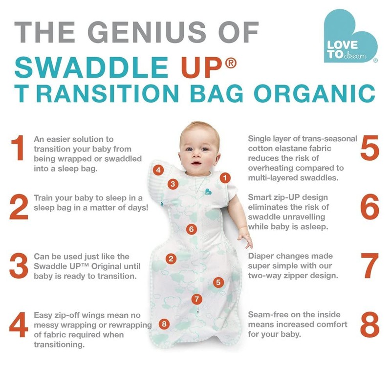 - AN EASIER TRANSITION FROM SWADDLING TO ARMS FREE SLEEP: Once your baby starts to show signs of rolling, it's time to stop swaddling and transition them to arms free sleep. Our unique, award winning Swaddle Up Transition Bag, is an easy way manage this change while helping to maintain an established sleep routine. Specially designed to provide the secure feeling of a swaddle while the zip-off wings allow a gentler and gradual move to arms-free sleeping.