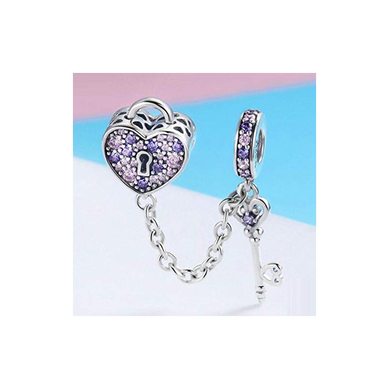 Love You Lock Key fit Pandoras Charms Bracelets 925 Sterling Silver Charms Dangle Heart Beads for Women (Lock Key Charm)