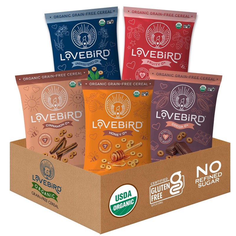 Lovebird Organic Cereal That Actually Tastes Good - 100% Real Food & Healthy Gluten Free Cereal, No Refined Sugar, Paleo, Keto Friendly Healthy Snacks for Kids, Adults - Sampler